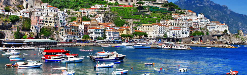 Siamo in Campania, per la precisione in provincia di Salerno a sud della penisola sorrentina. I 50 chilometri di tornanti e falesie a picco sul mare ci portano nelle famose Positano, Amalfi, Ravello Minori, Maiori, Cetara e Vietri. Questi comuni, insieme a Sorrento, sin dall'Ottocento sono meta di un turismo internazionale, in prevalenza anglosassone. Assieme al turismo, continua la vocazione agricola e marinara. Ancora oggi, la produzione di limoni e l'industria conserviera legata alla trasformazione del pesce sono due voci importanti dell'economia. La tradizione tessile di Positano e quella ceramistica di Vietri sono famose in tutto il mondo. La Costiera amalfitana, Patrimonio UNESCO dal 1997.
